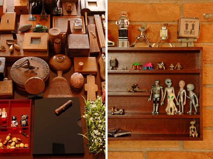 巴西建筑大師Marcio Kogan的家充滿了玩味與豐富元素,也許這和他原來是位電影制片人有關系。他的家在一座建筑的12樓——那座建筑是他1980年首次參加建筑比賽獲獎的一個作品。這個家的視野是窗外城市的天空,也是屋內琳瑯滿目的擺件:無論是鋼琴上還是柜子上,擺滿了手稿、家具模型、旅行紀念品或是書籍。Kogan記得其中每件東西的來源和故事,他的家是他自己的記憶博物館。