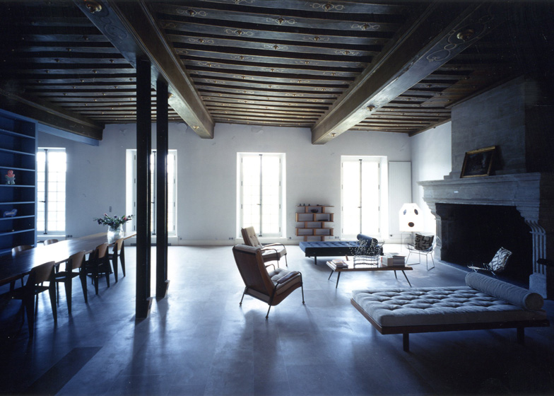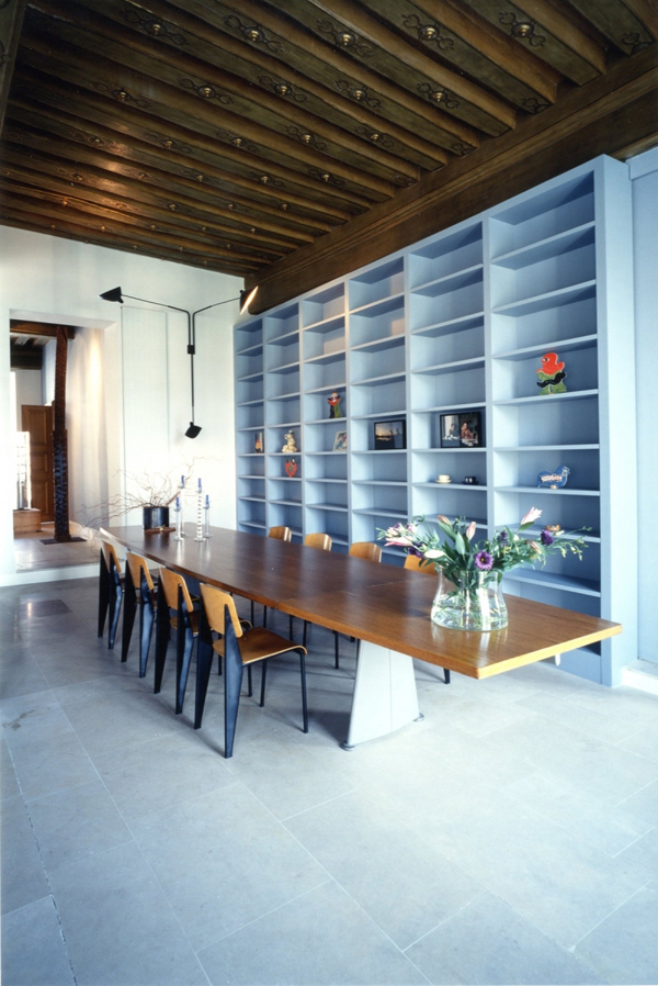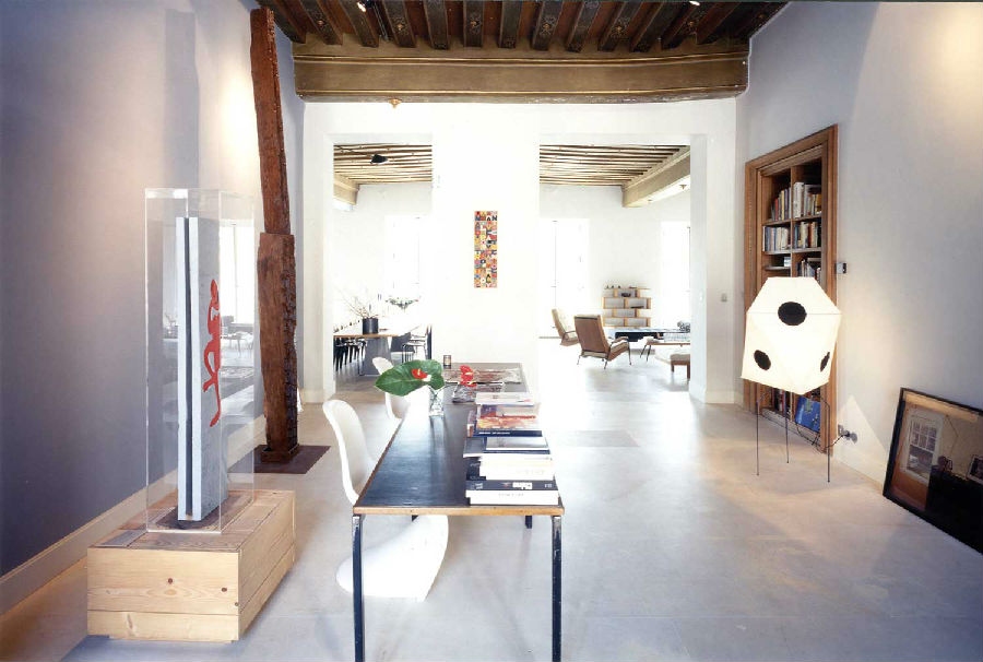 一張桌子、一個窗戶、一個皇家廣場,雕像和馬。在巴黎孚日廣場附近,Fuksas建筑師夫婦住在這里。設計大師Jean Prouvé的原版家具、或是20世紀的不少經典設計,還有一些民間工藝品在這個寬闊的空間內協調一致。在入口處還有一個戰士雕像等待著這對建筑師遠途出差回來的時刻。