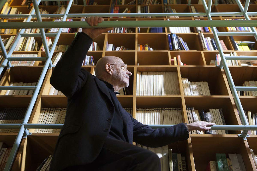 Bellini愛米蘭,愛這座城市的文化和街道。這位意大利建筑大師的家就在米蘭市中心附近,一座建筑物的19樓。整個家的顏色就是典型的意大利風格,最引入注目的是書房——這里簡直就是一座圖書館,高達九米的書柜放滿了各式書籍。